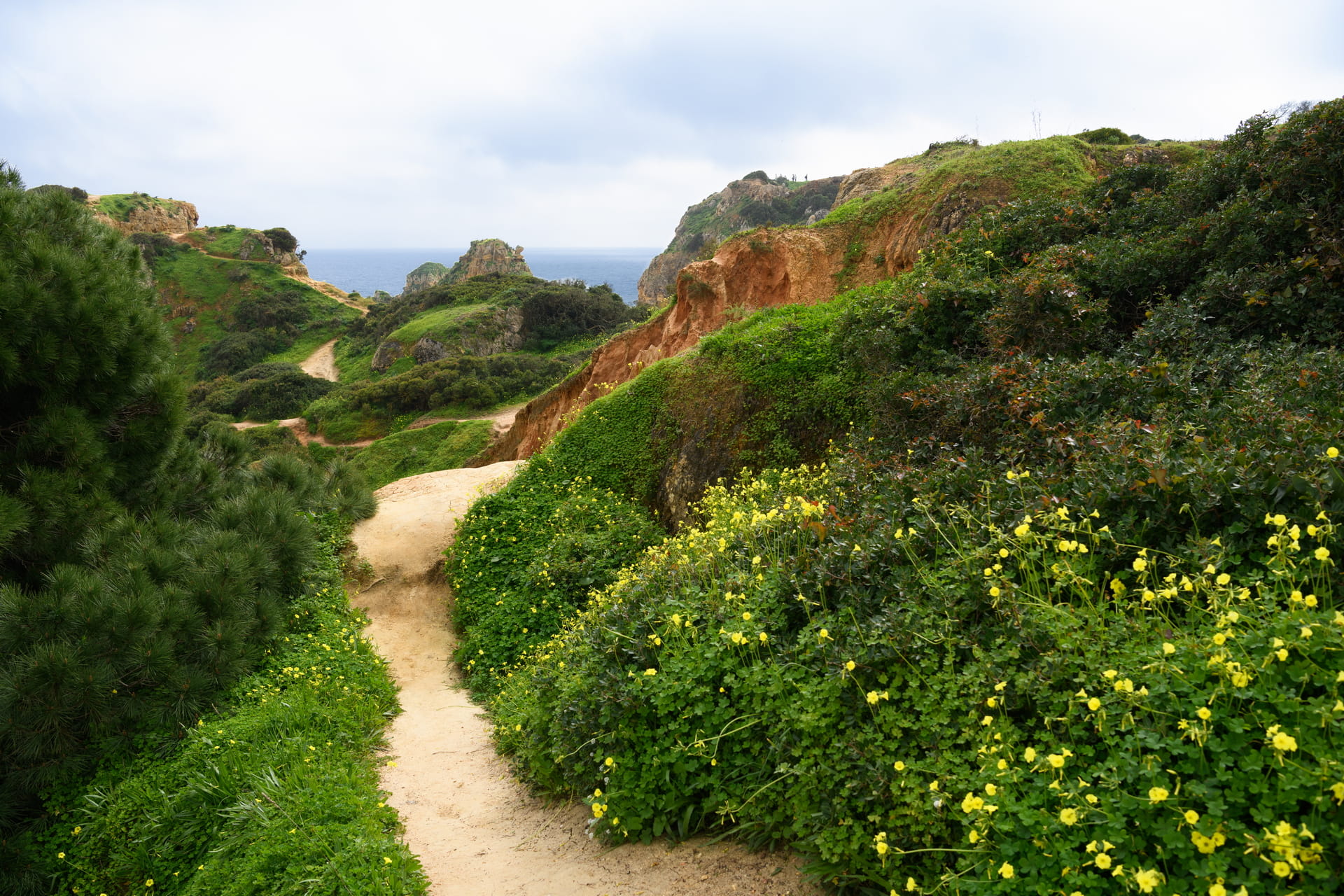 Ein weiterer Fotospot ist Lagos mit seinen ockerfarbenen Klippen am Meer. Ich wanderte über einen Holzsteg, der sich direkt entlang der bizarren Felsformationen durch das Grün schlängelt. Die gelben Blüten des Nickenden Sauerklees schwanken im Wind. Diese Pflanze verbreitet in der Natur eine fröhliche Stimmung. Sauerklee im Garten ist bei mir wegen seiner starken Ausbreitung nicht so beliebt🍀